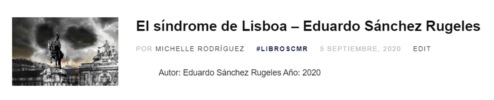“El síndrome de Lisboa”, de Eduardo Sánchez Rugeles