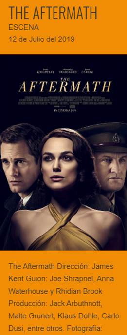 The Aftermath es una película de drama dirigida por James Kent y escrita por Joe Shrapnel y Anna Waterhouse, basada en la novela del mismo nombre por Rhidian Brook. La película se estrenó el 1 de marzo de 2019.