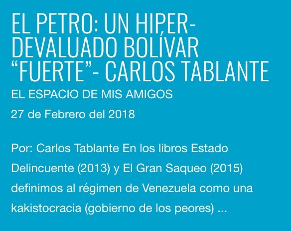 El Petro: un hiper-devaluado Bolívar «fuerte» – Carlos Tablante – El espacio de mis amigos
