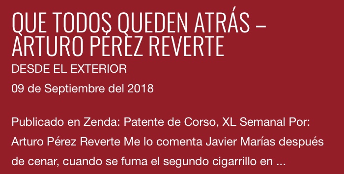 “Que todos queden atrás”, de Arturo Pérez Reverte – Desde el Exterior