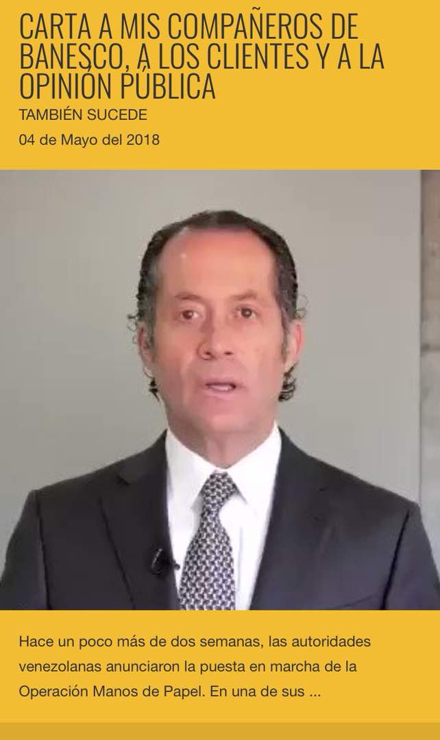 Carta a mis compañeros de Banesco, a los clientes y a la opinión pública – También Sucede