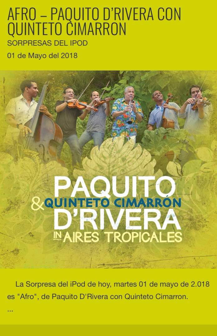 “Afro”, de Paquito D’Rivera y Quinteto Cimarrón – Sorpresas del iPod