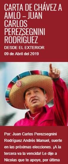 “Carta de Chávez a AMLO”, de Juan Carlos Perezsegnini Rodríguez – Desde el Exterior
