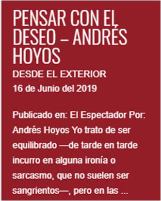 “Pensar con el deseo”, de Andrés Hoyos – Desde el Exterior