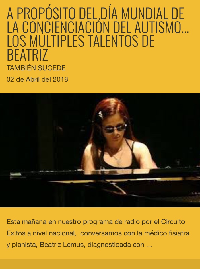 «A propósito del día mundial de la concienciación del autismo… Los múltiples talentos de Beatriz» – También Sucede
