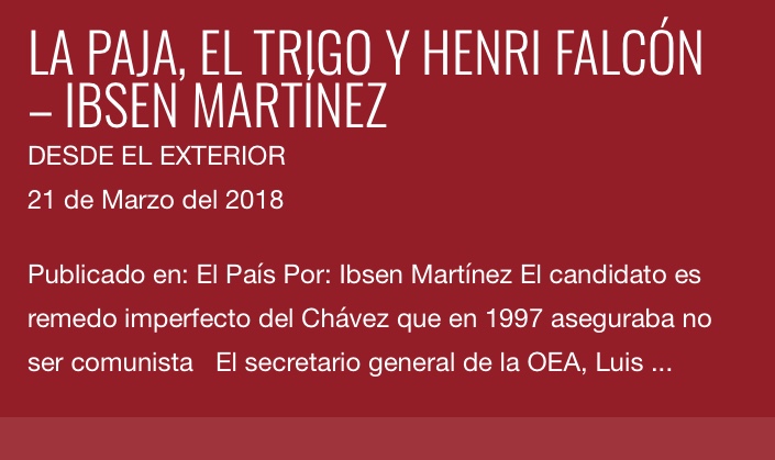 La paja, el trigo y Henri Falcón – Ibsen Martínez – Desde el Exterior