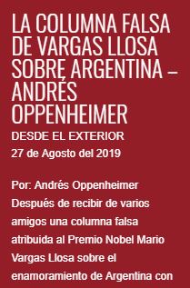 “La columna falsa de Vargas Llosa sobre Argentina”, de Andrés Oppenheimer – Desde el Exterior