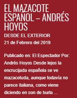 “El mazacote español”, de Andrés Hoyos – Desde el Exterior