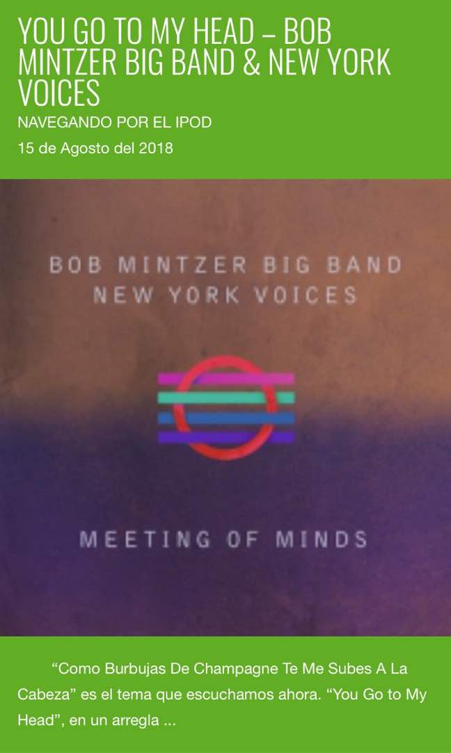 “You Go To My Head”, de Bob Mintzer Big Band y New York Voices – Navegando por el iPod