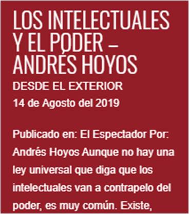 “Los intelectuales y el poder”, de Andrés Hoyos – Desde el Exterior