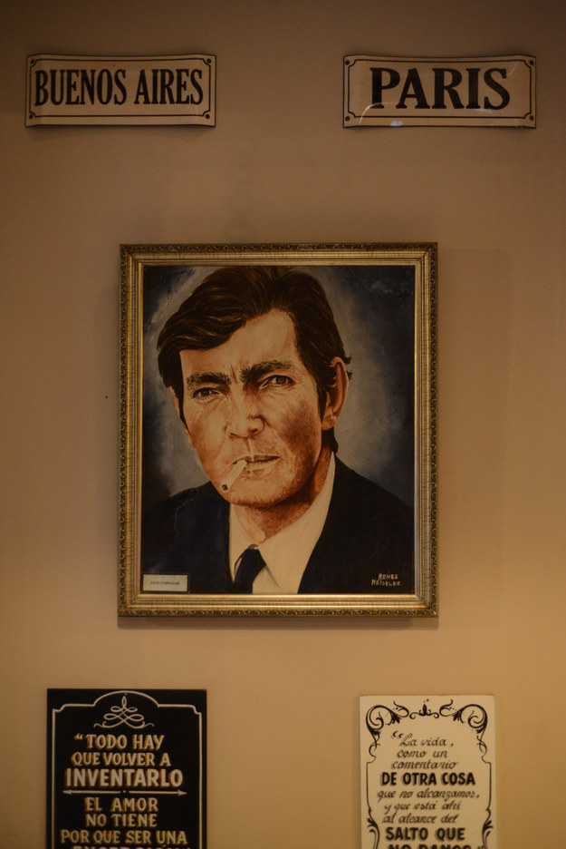 El Café por lo que nos reseñan los que lo han visitado, no solo está lleno de las esperadas fotografías, dibujos de Cortazar en diversos momentos de su vida, también hay otros detalles. Sus maquinas de escribir, sus