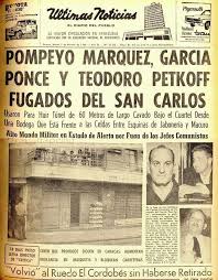 volvieron a atrapar, y entonces en 1967 se les escapa de la cárcel Moreno, junto a Pompeyo Márquez y Guillermo García Ponce por un túnel. Un turco, el turco creo que lo llamaban Said. Llegó, compró un abasto cerca del cuartel San Carlos, y empezó a construir el túnel para que se escapasen los tres dirigentes comunistas. Claro, el túnel por el que se escapa Teodoro Petkoff es un túnel rudimentario, pequeño, asfixiante, no como el túnel del Chapo.