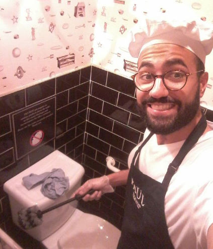 Esta foto la tomé la primera vez que me designaron “limpiador oficial de pocetas” del restaurante que más tarde, irónicamente, dirigí como jefe. Se la envié a mi mamá por un mensaje de WhatsApp, diciéndole “mira qué giros da la vida; hace cuatro meses era coordinador de cátedra en una universidad pública en Venezuela y ahora estoy dialogando solo, dentro de un baño que huele a mierda”.
