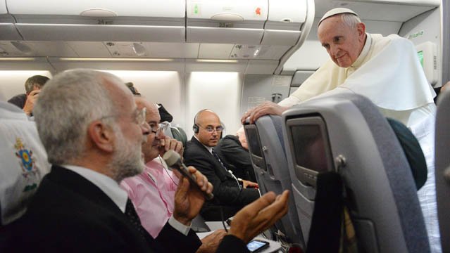 La imagen del Papa regresando en el largo vuelo de Río a Roma, es elocuente. Está parado casi como el sobrecargo del avión de Alitalia, entre los asientos conversando con periodistas, les atiende con amabilidad y dice frases tan sorprendentes como estas: le hablan del tema del homosexual y dice “quién soy yo para juzgar a un gay”. Por supuesto, pone punto en las cosas fundamentales “no al sacerdocio de las mujeres” y lo dijo con una frase, pues, que estremece “la Virgen María está por encima de los obispos, está por encima de los sacerdotes, nadie es más importante que una mujer en la iglesia, nadie, la mujer siempre está por encima”. Pero no, la Virgen siempre estuvo por encima. A sus colegas y compañeros obispos les dice que hay que alejarse del boato porque los obispos más que administradores son pastores y tienen que vincularse con el pueblo y ser sencillos y humildes.