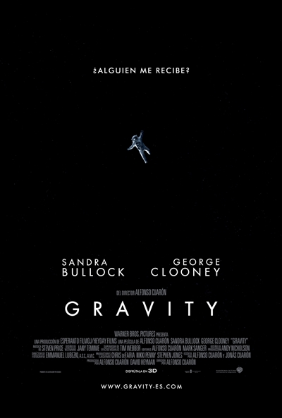 Gravity. Gravedad, del mexicano Alfonso Cuarón, es una historia del, el guión lo escribió él mismo junto con su hijo. Quien de paso dirigió un documental muy interesante, a propósito de una breve escena que hay en la película, cuando hacen una llamada telefónica y desde la Tierra le contestan en un idioma que ellos nunca entienden.