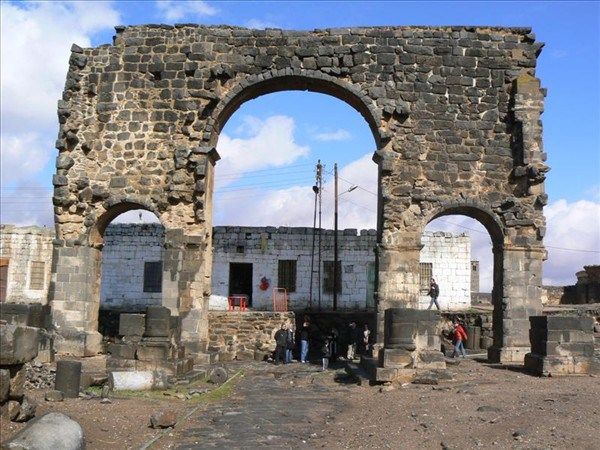 Estuvo habitada continuamente durante 2.500 años y se convirtió en la capital del imperio árabe romano. La obra central es un espléndido teatro romano que data del siglo II, que sobrevivió intacto hasta el conflicto. Los arqueólogos han revelado que ahora el sitio ha sufrido serios daños por bombardeos con morteros.