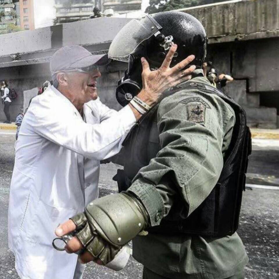 VG: El impulso en el momento. Cuando estábamos realmente solos, porque nosotros los médicos, los que estábamos al frente, quedamos bloqueados por arriba, nos estaban agrediendo desde arriba, por abajo, al frente, y al lado de Chacaito. En ese momento el miedo es humano. Y el miedo es real. El miedo o paraliza o te impulsa. En mi caso, tuve realmente el impulso humano, y hasta amable, de acercarme al guardia.