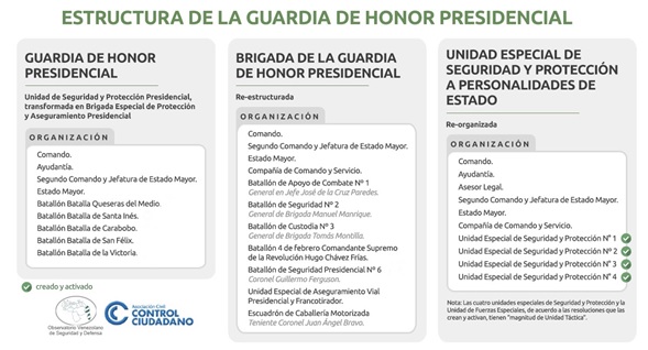 El sábado 04 de agosto de 2018, fuimos testigos los venezolanos, de una reacción militar insólita, en términos de una amenaza a un jefe de estado, que debe ser respondida por la Guardia de Honor Presidencial, una unidad militar conformada por 10 batallones para la protección del presidente y la de sus allegados. Dos brigadas y una división de operaciones aeroespaciales integrada por personal militar del Ejército, la Armada, la Aviación, la Guardia Nacional y la Milicia Bolivariana, además de órganos de seguridad ciudadana, 11 batallones, una unidad de francotiradores, un escuadrón de caballería motorizada y una unidad de fuerzas especiales, entre otras unidades.