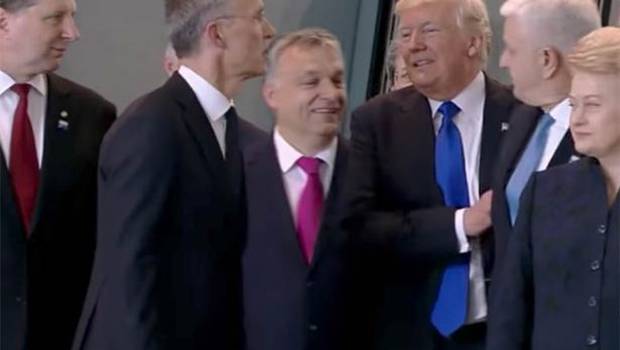 Por el otro, llega el momento de la foto, le da un empujón al Primer Ministro de Montenegro, dirá este es un país chiquitico que hace 20 años ni existía, y se paró adelante y si nadie le reclama pues manotea también a la señora.