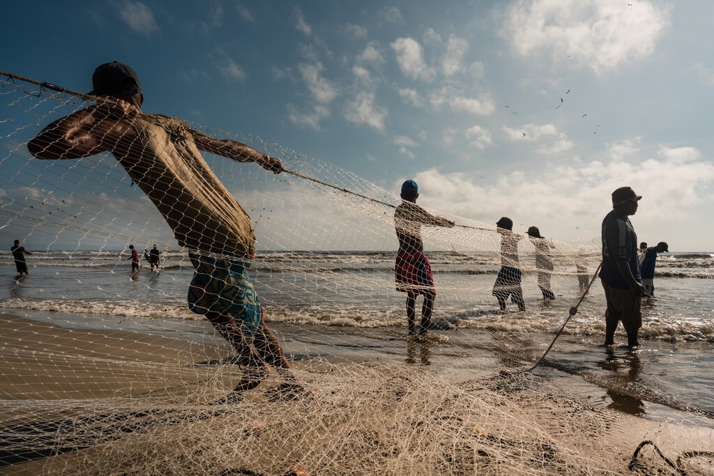 Pescadores a lo largo de la costa, tratando de alimentar tanto a su pueblo, Boca de Aroa, como a la vecina Tucacas, donde los lugareños luchaban por comida.