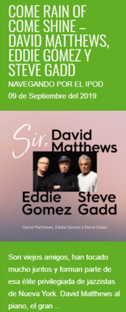 «Come Rain Of Come Shine«, de David Matthews, Eddie Gómez y Steve Gadd