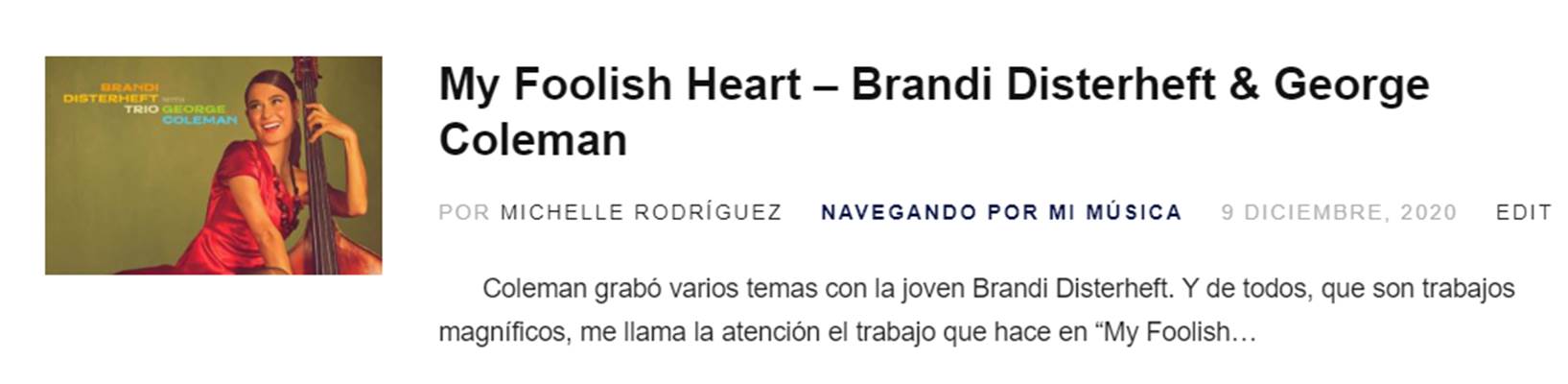 My Foolish Heart”, de Brandi Disterheft & George Coleman