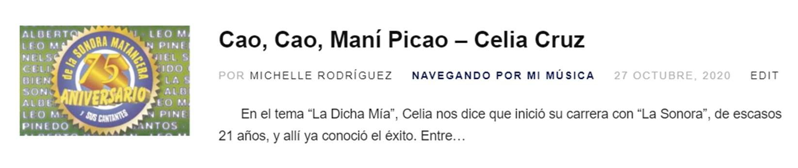 Cao, Cao, Maní Picao”, de Celia Cruz