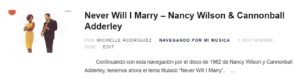 “Never Will I Marry”, de Nancy Wilson & Cannoball Adderley