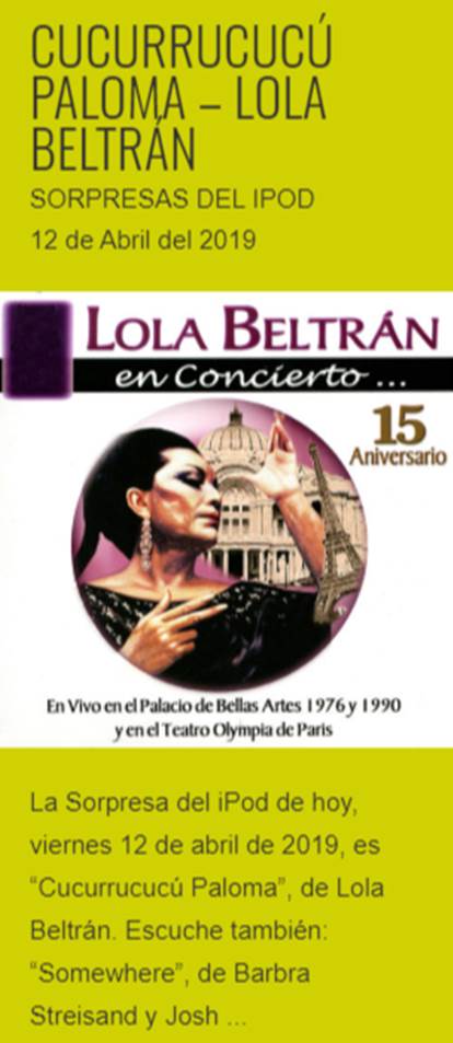 «Cucurrucucú Paloma«, de Lola Beltrán