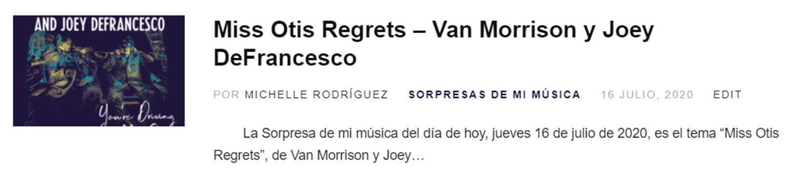 “Miss Otis Regrets”, de Van Morrison y Joey DeFrancesco