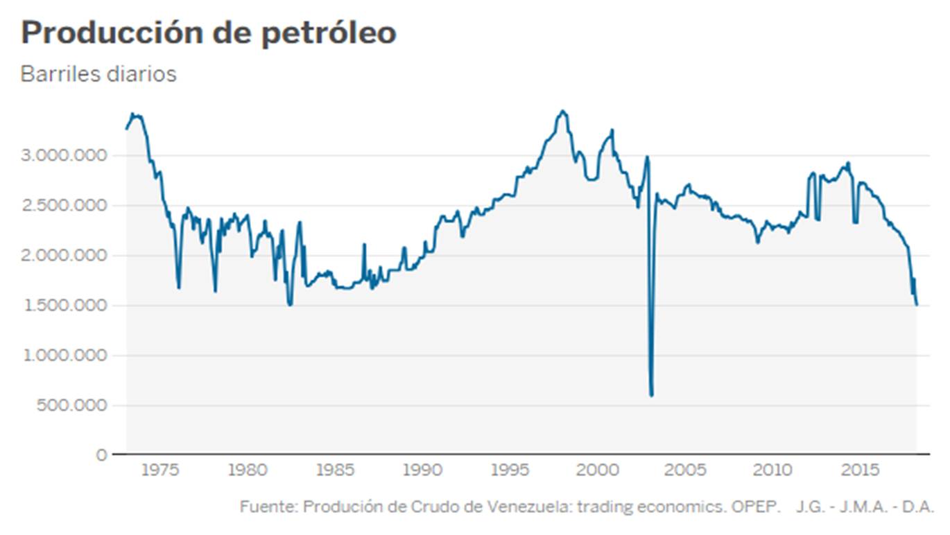 En palabras de Anna Ayuso, «[Venezuela] presenta un déficit tremendo porque toda la industria local está más o menos destruida. Las divisas que les venían básicamente del petróleo son bajas, pero es que además lo han vendido por adelantado a algunos países, entre ellos China». Además de la variable del precio del crudo, bajo en los últimos años, la experta destaca sobre todo la pérdida de producción en un país que posee, según la OPEC, las mayores reservas de crudo del mundo (uno de cada cuatro barriles).