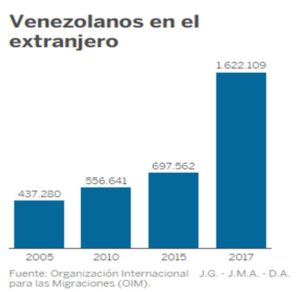 En estas circunstancias, cada vez más venezolanos se marchan de su país. «Al principio, salía la población de renta alta que podría permitirse marchar. Ahora es todo el mundo. Es una crisis humanitaria tremenda», acusa Anna Ayuso. En 2017 el número de ciudadanos que vivía fuera del país multiplicó por 2,3 el de dos años antes. La cercana Colombia sobre todo, pero también Estados Unidos y España, han recibido gran parte de ese flujo migratorio. Para la investigadora, especialista en Latinoamérica, la elección de los destinos próximos a las fronteras revela la situación desesperada de muchos de ellos. «Se están yendo a zonas fronterizas de Colombia o Brasil, que son pobres», comenta.