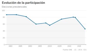 La baja afluencia en las últimas elecciones es una señal de la pérdida de confianza en las instituciones por parte de los venezolanos, indica Anna Ayuso. La evolución histórica de la participación ha marcado un récord negativo en los comicios presidenciales del pasado domingo.
