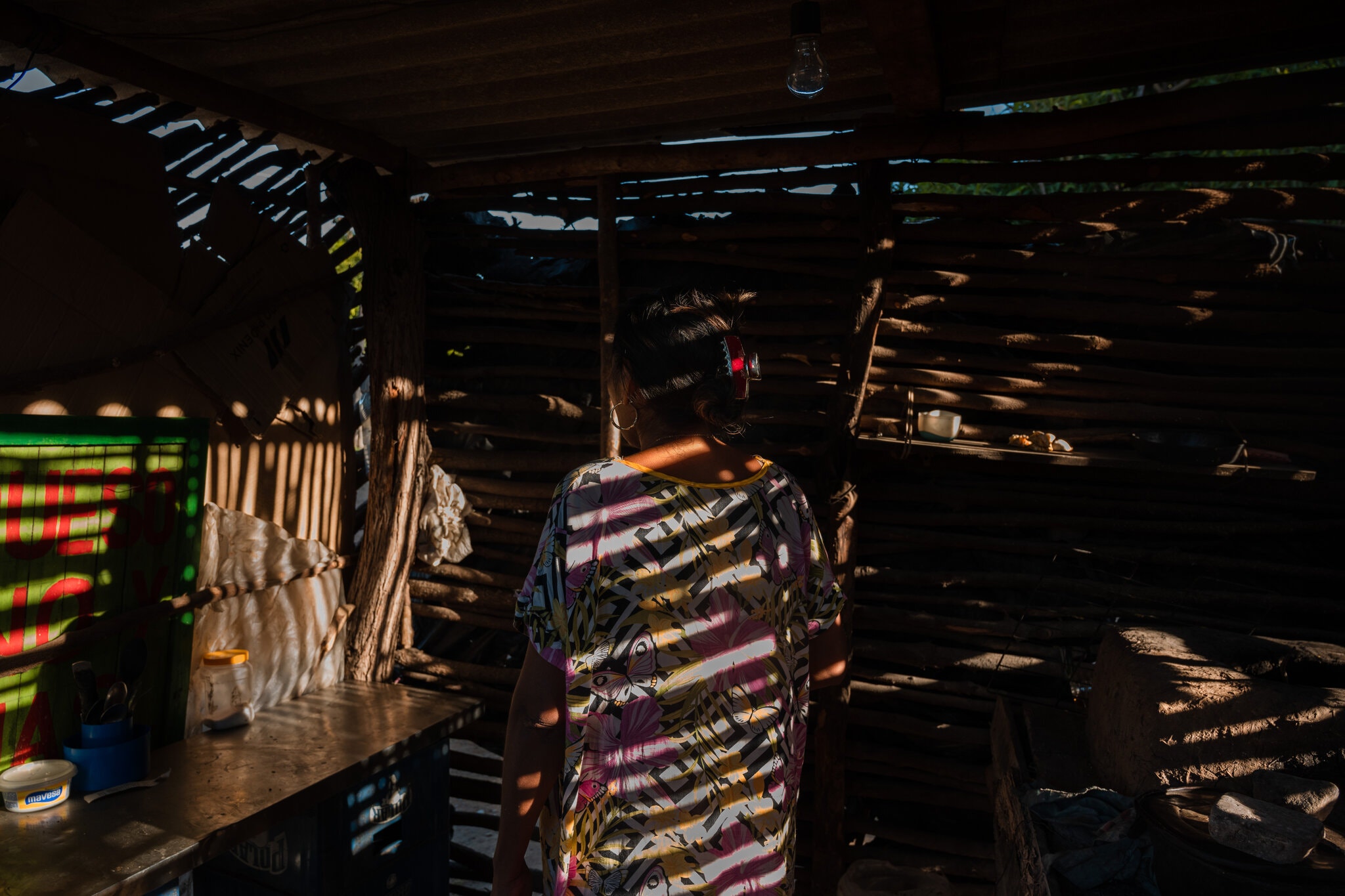 Los turistas que le compraban sus bolsos y hamacas tejidas han desaparecido con la pandemia. Ahora su familia sobrevive yendo en bicicleta a Colombia para vender chatarra cada semana. Pero Jusayu ha estado confinada en casa debido a una bala perdida que la hirió durante la reciente guerra de bandas.