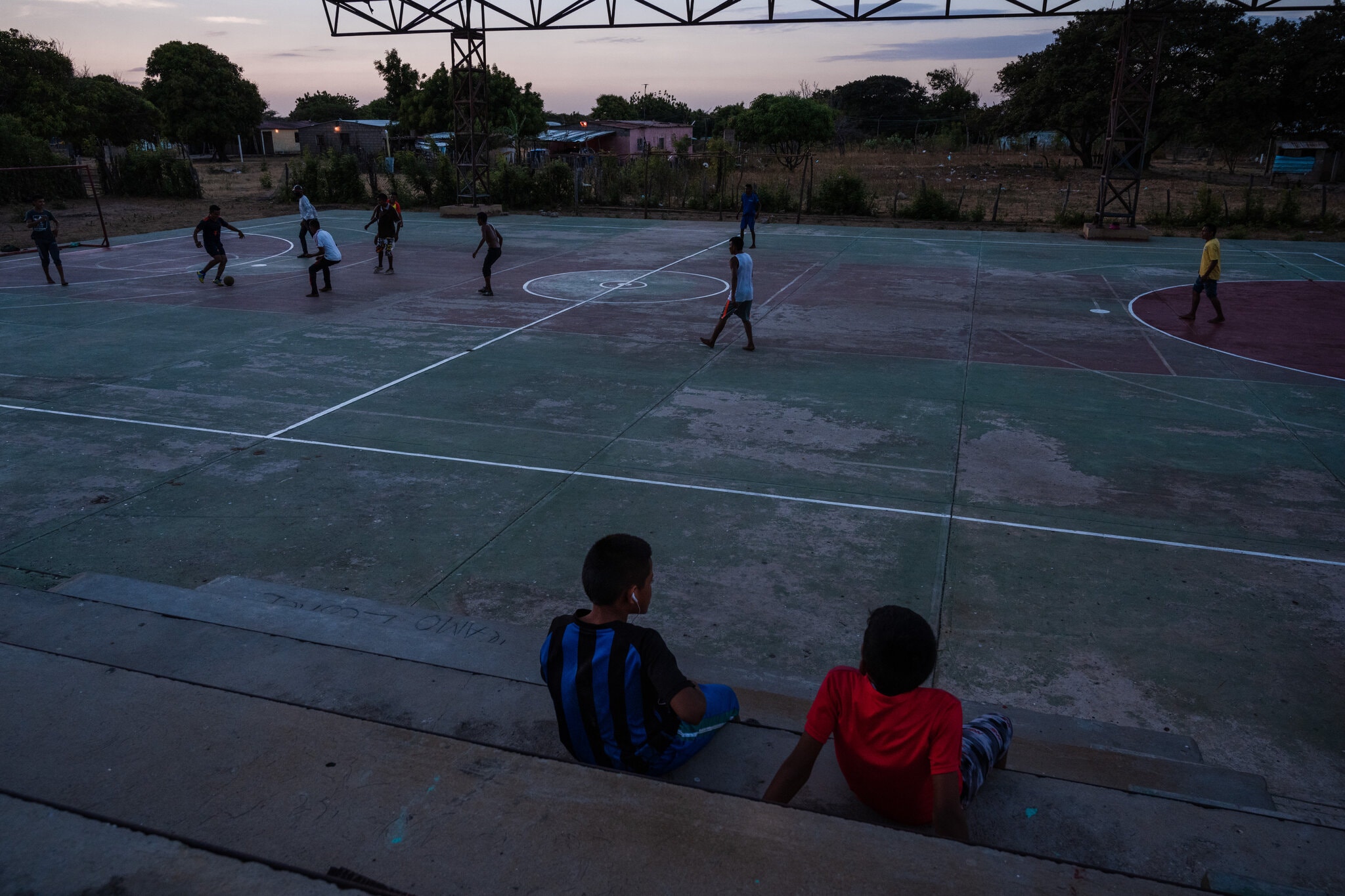En Guarero, cuando el calor refresca al atardecer, los niños vuelven a reunirse en el campo de fútbol donde Junior Uriana, un joven de 17 años, fue asesinado a tiros en 2018.