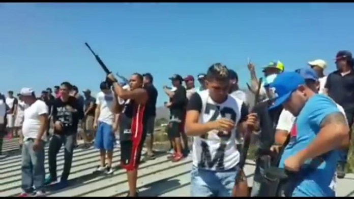 I may be used to seeing malandro videos, but this one is different. Different in terms of the film and the weaponry, the scale of the cast, and – inevitably – that sky. This barrage of bullets, I later learn, was filmed in broad daylight atop a prison roof. The occasion? A funeral for a Margariteño prison gang-lord.