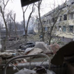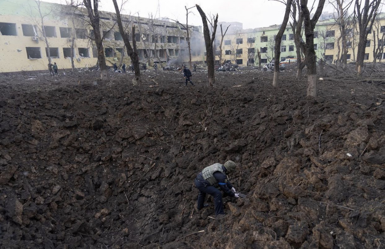 Escribe el videoperiodista Chernov: “El 9 de marzo, dos ataques aéreos destrozaron el plástico que cubría las ventanas de nuestra camioneta. Vi la bola de fuego solo un latido antes de que el dolor perforara mi oído interno, mi piel, mi cara. Vimos salir humo de un hospital de maternidad. Cuando llegamos, los trabajadores de emergencia todavía estaban sacando a mujeres embarazadas ensangrentadas de las ruinas. Nuestras baterías estaban casi agotadas y no teníamos conexión para enviar las imágenes. El toque de queda estaba a minutos de distancia. En la oscuridad, enviamos las imágenes alineando tres teléfonos móviles con el archivo de video dividido en tres partes para acelerar el proceso. Tomó horas, mucho más allá del toque de queda. El bombardeo continuó, pero los oficiales asignados para escoltarnos por la ciudad esperaron pacientemente”.