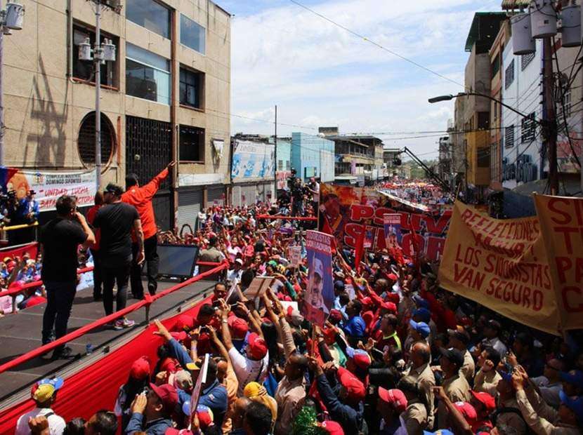 Porque basta ver las fotos oficiales de la Agencia Venezolana de Noticias -que hacen lo imposible para que se vea una multitud compacta escuchando las promesas de Maduro-, para darse cuenta del olor a fracaso que despide cada convocatoria, aun cuando Ultimas Noticias invente que “La calle Ramírez de San Félix se llenó para recibir al presidente”, cuando la gráfica que acompaña semejante título lo que deja ver es a Nicolás Maduro y su esposa solos en una tarima enorme y a la cual está prohibido acercarse demasiado porque está rodeada de cercas de metal por los cuatro costados, muralla que impide que la gente se le acerque más allá de dos metros y a lo que cabe agregar que cada reja está a su vez fuertemente custodiada por cientos de funcionarios disfrazados con franelas y cachuchas rojas, cuya labor es impedir cualquier acercamiento al presidente.