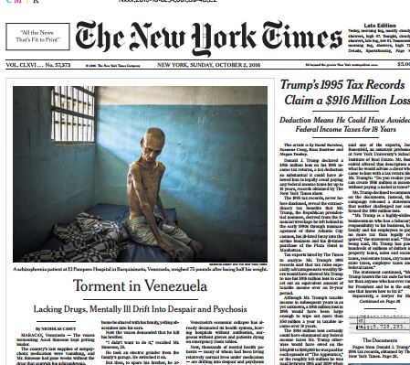 Nicholas Casey corresponsal del New York Times en Venezuela realizó un dramático reportaje sobre Venezuela que se destaca en la primera página del New York Times de hoy domingo 02…