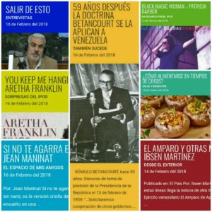 Entre «Salir de esto» y «El Amparo y otras masacres» de Ibsen Martínez Por Gabriela HernandezPlaylist de la Semana18 febrero, 2018 Salir de esto – Entrevistas ¿Cómo alimentarse en tiempos de crisis? – Salud y Bienestar …