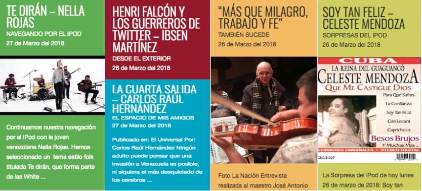 Entre «Henri Falcón y los guerreros del twitter» y «La cuarta salida» Por Laura RodriguezPlaylist de la Semana1 abril, 2018 Henri Falcón y los Guerreros del Twitter – Ibsen Martínez – Desde el exterior Te dirán – Nella Rojas – Navegando por el iPod…